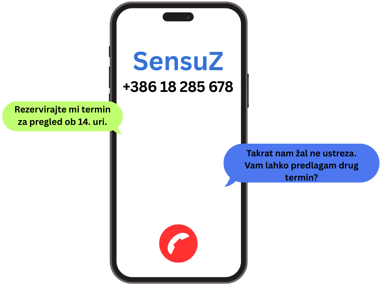 Stranka komunicira v slovenščini, kot bi govorila z osebo.